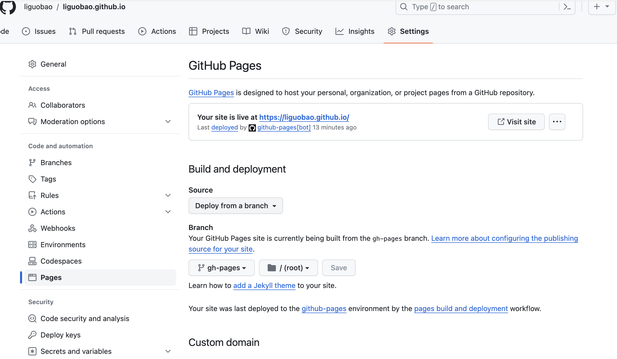 Github 项目中 settings/pages 设置我的 “Your GitHub Pages site”